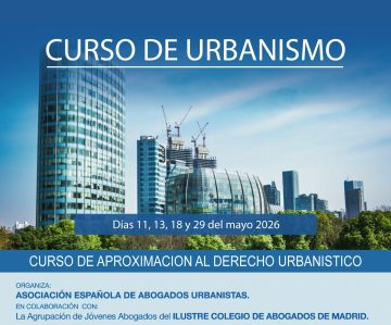 Días 11, 13, 18 y 20 de mayo 2026. Magistrados, Técnicos, Abogados Urbanistas y Directores Generales de Urbanismo lo imparten en Madrid. Colabora Agrupación de Jóvenes Abogados del Colegio de Madrid. En el curso se estudia materias de interés para poder trabajar y desenvolverse en el sector del Urbanismo, recogiendo las últimas reformas que el […]